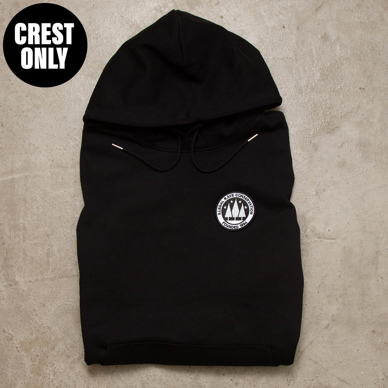 ILLEGAL RAVE CONSERVATION PULLOVER HOODED SWEATSHIRT WITH EMBROIDERED PATCH.
