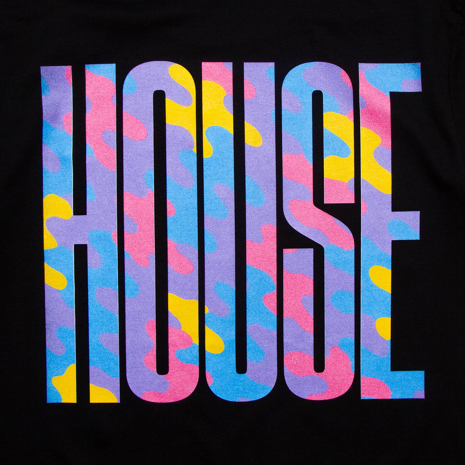 The Higher House design has been remixed with playful, colourful camouflage shapes. Gotta have House, music, all night long.