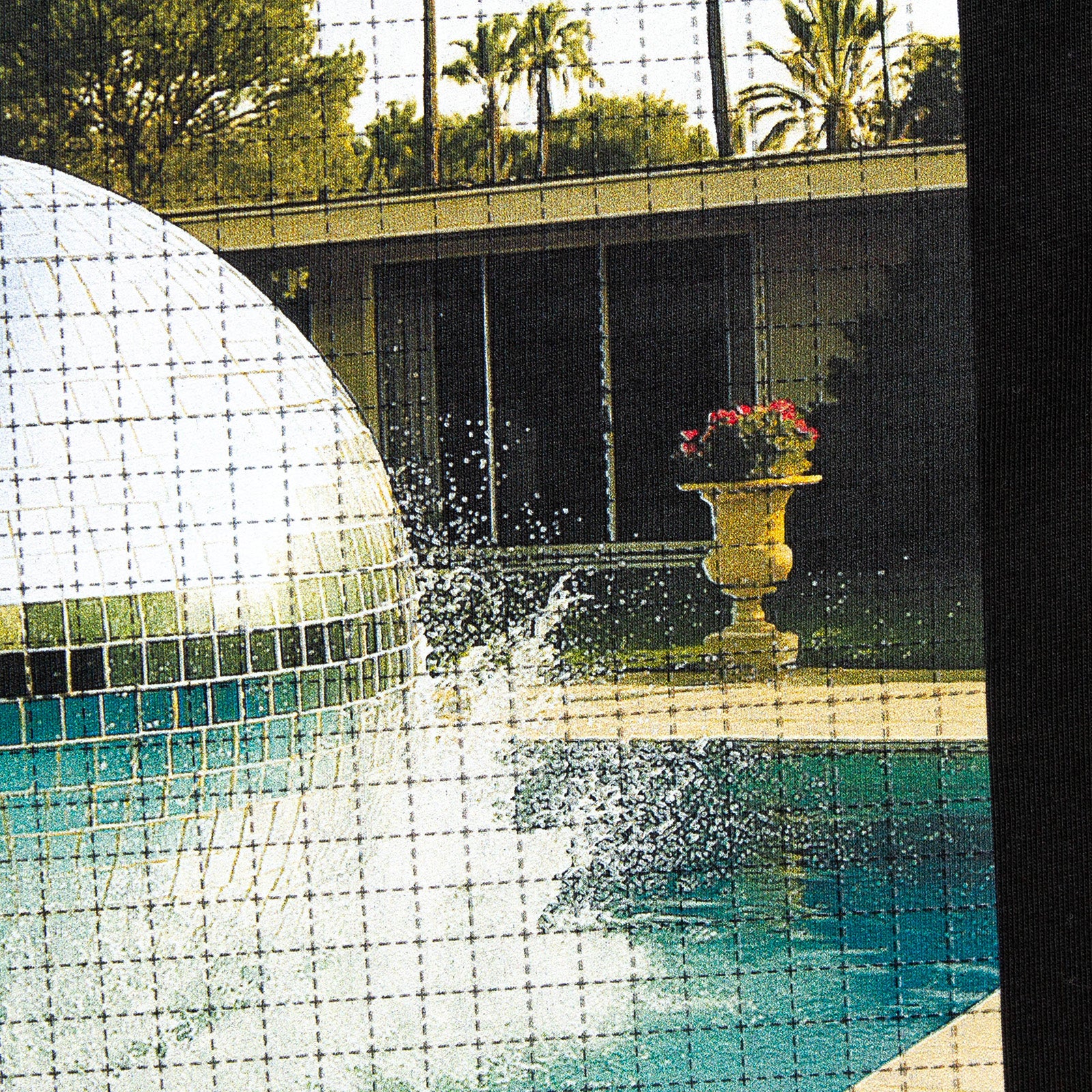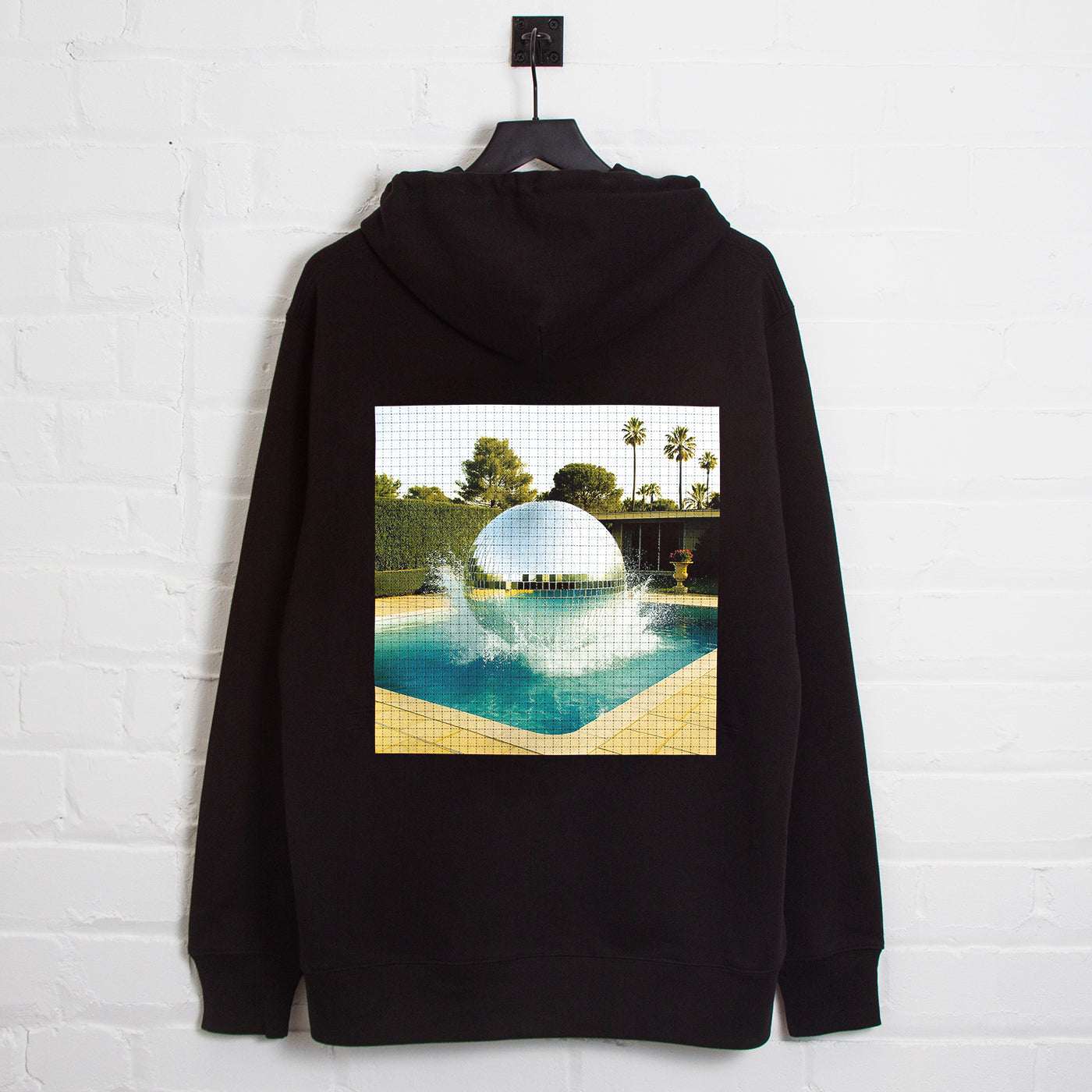 Disco Poolside Trip. Large back print graphic with small front crest. Printed in-house by us on a unisex heavy-weight 100% Organic Cotton Hood (350gsm).