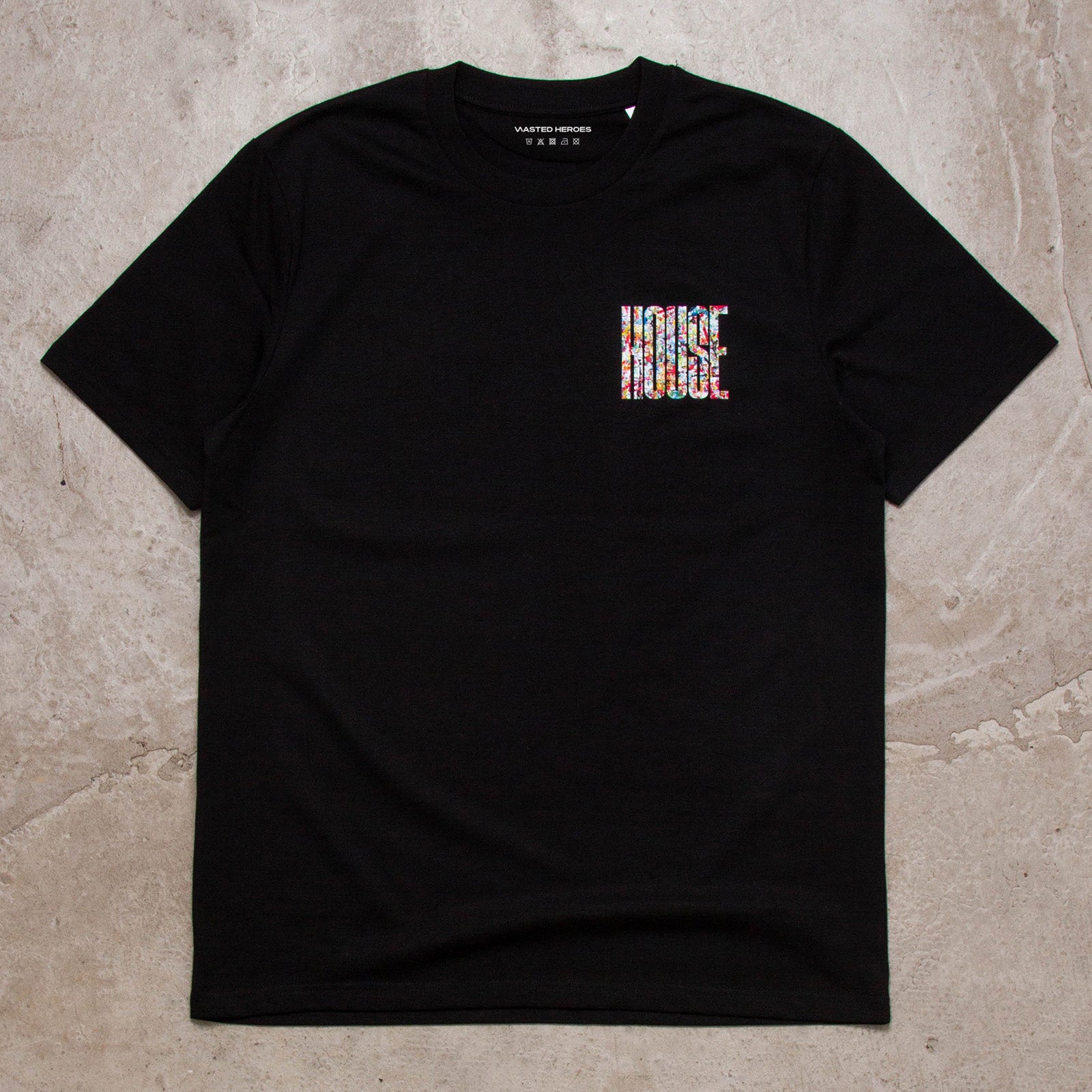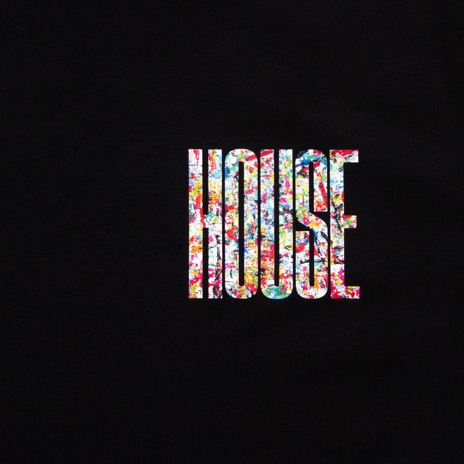 The Higher House design has been remixed. In the print room, Adam, our screen-printer, has a piece of card where he keeps his palette knives. I spotted it and thought it would make an amazing t-shirt. Gotta have House, music, all night long.