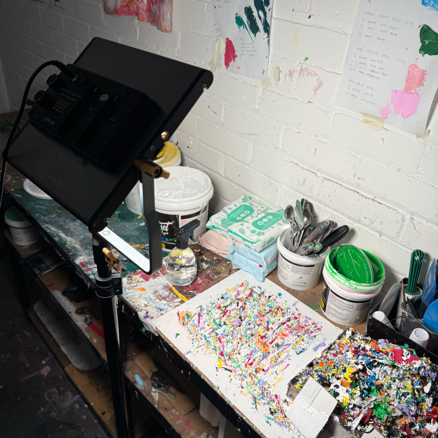 The Higher House design has been remixed. In the print room, Adam, our screen-printer, has a piece of card where he keeps his palette knives. I spotted it and thought it would make an amazing t-shirt. Gotta have House, music, all night long.