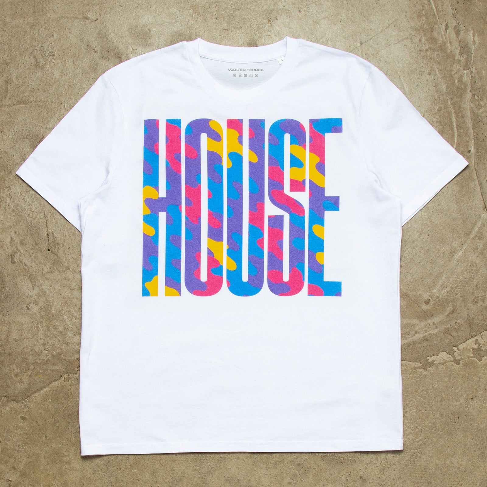 The Higher House design has been remixed with playful, colourful camouflage shapes. Gotta have House, music, all night long.