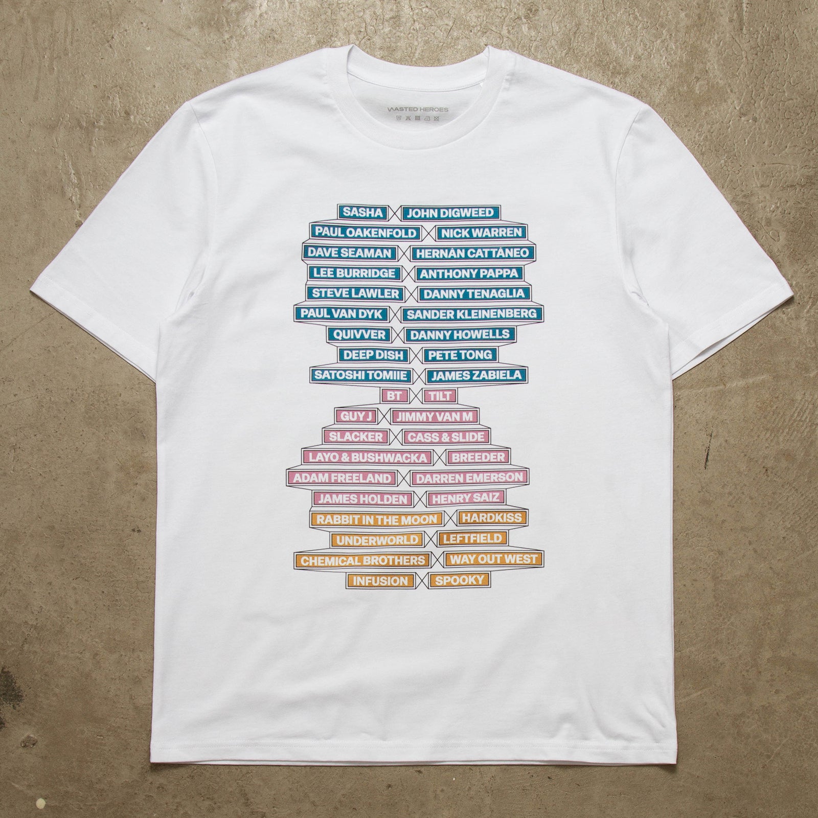 The Progressive House t-shirt started out as a simple project listing our top 10 favourite and most influential DJs and acts from the genre. We posted the idea on social media, and you all took over. The list quickly expanded to 38 names. This is a work in progress, with more designs to follow.
