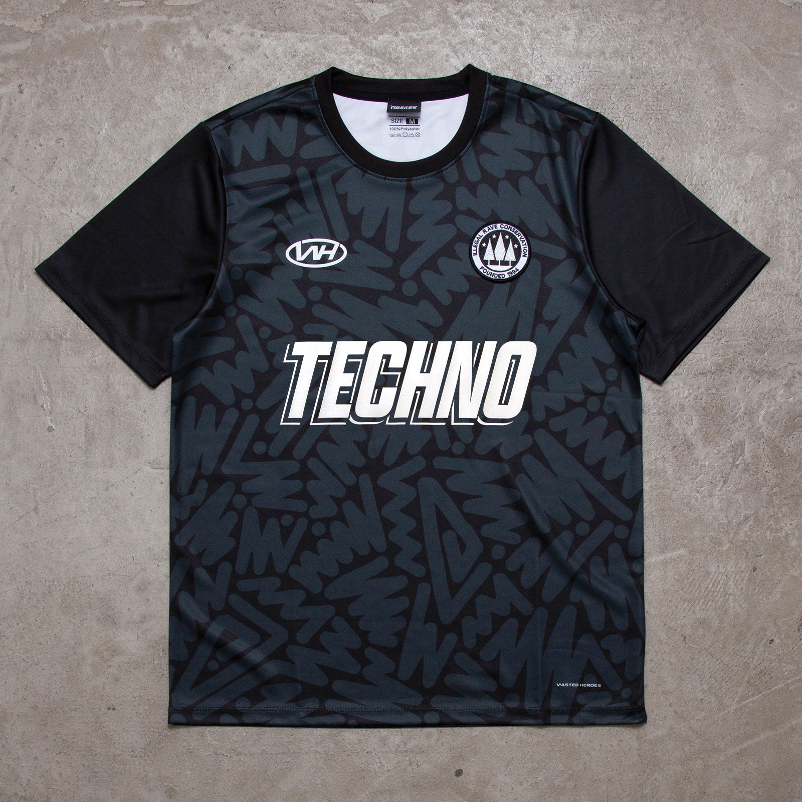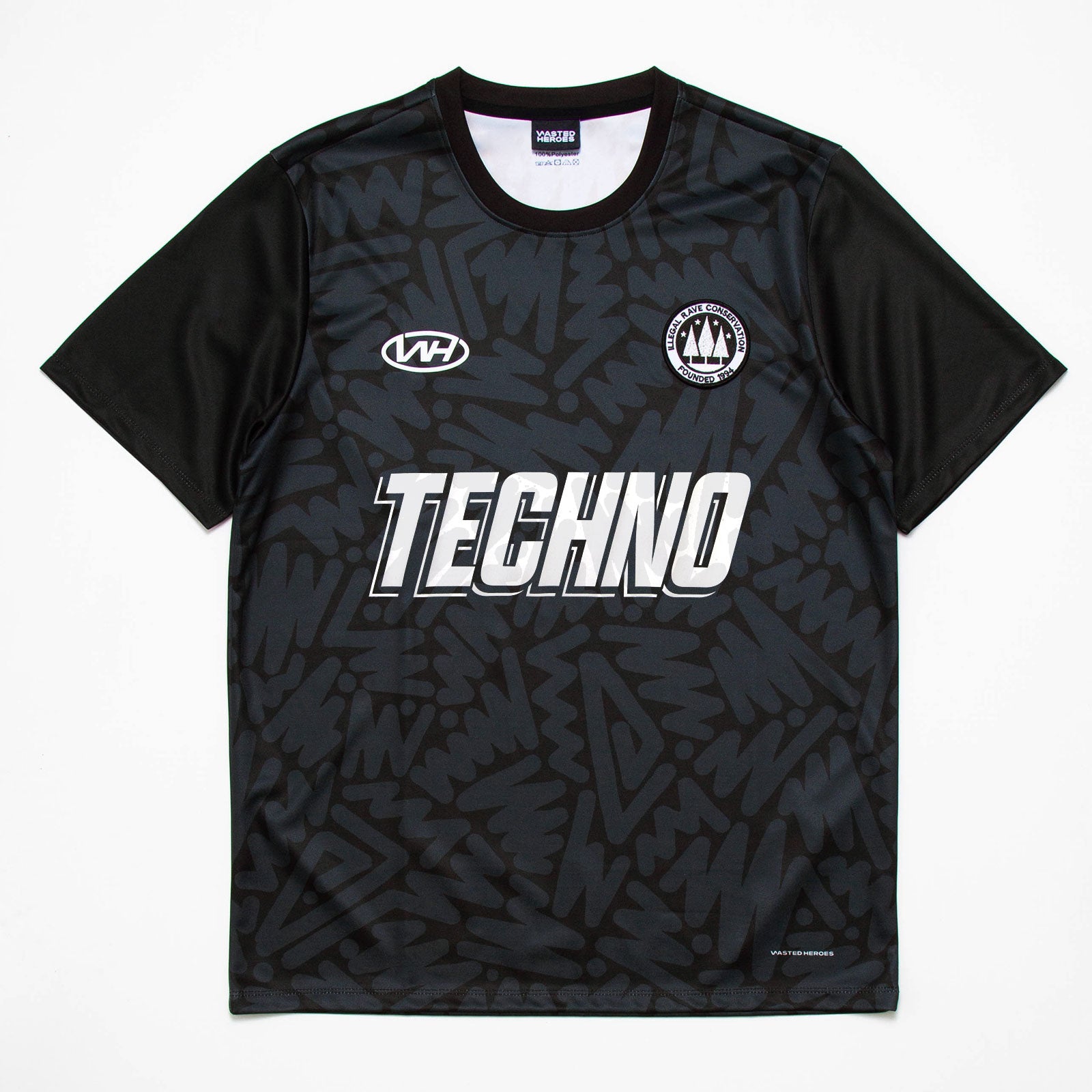 Our custom pattern football jersey. Acid House, Disco Psychedelia, Techno and DNB sponsor choices. Plus choose between the Illegal Rave Conservation and Smiley team badge.
