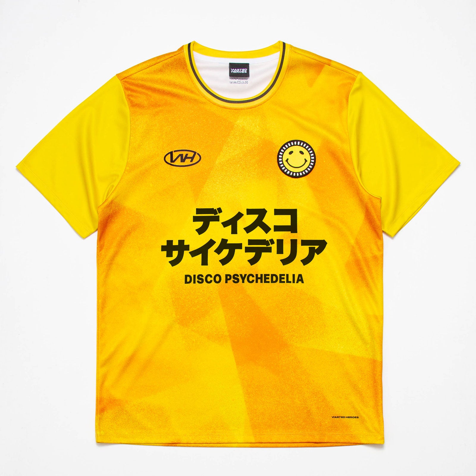 Our custom pattern football jersey. Acid House, Disco Psychedelia, Techno and DNB sponsor choices. Plus choose between the Illegal Rave Conservation and Smiley team badge.