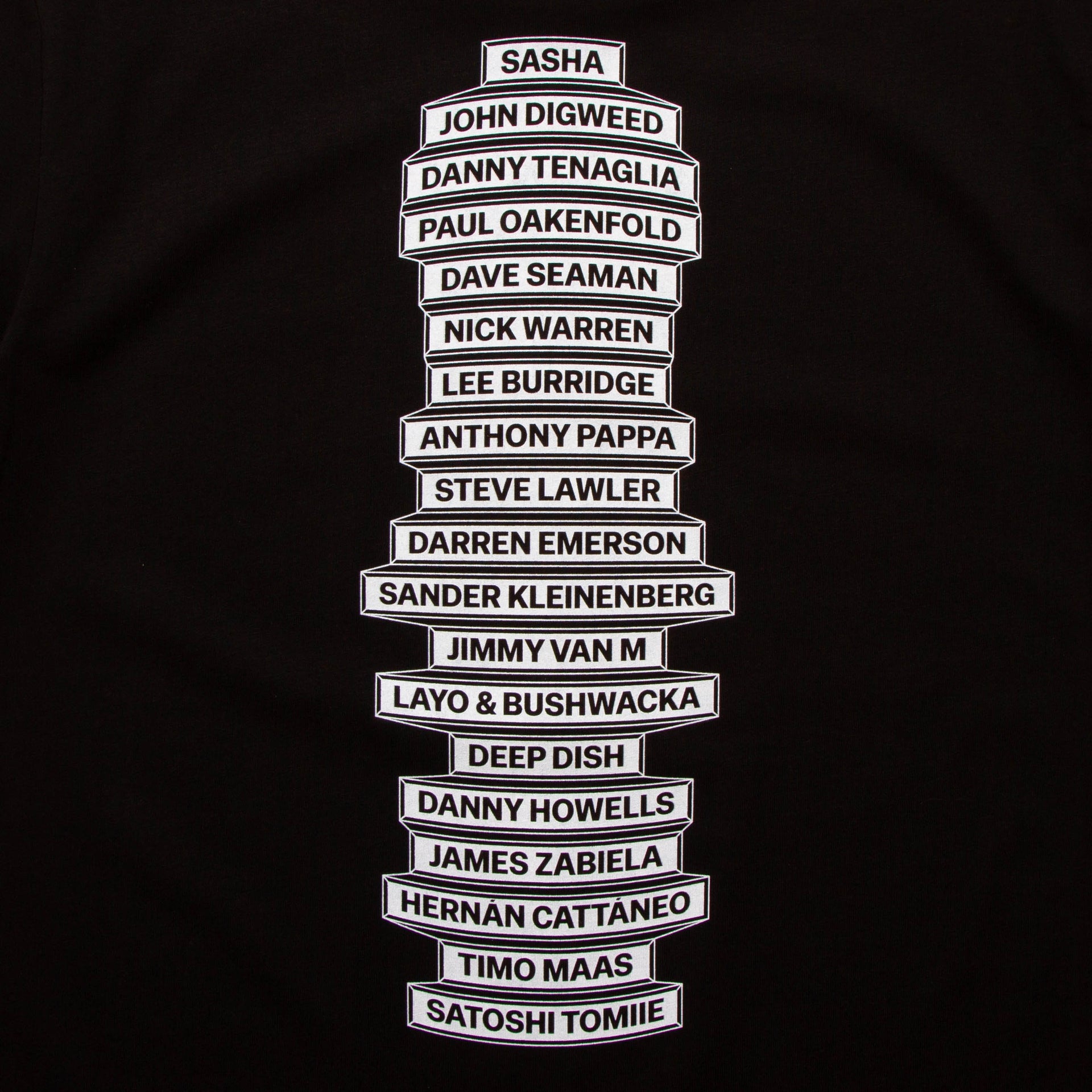 The Progressive House t-shirt started out as a simple project listing our top 10 favourite and most influential DJs and acts from the genre. We posted the idea on social media, and you all took over. The list quickly expanded to 38 names. This is a work in progress, with more designs to follow.