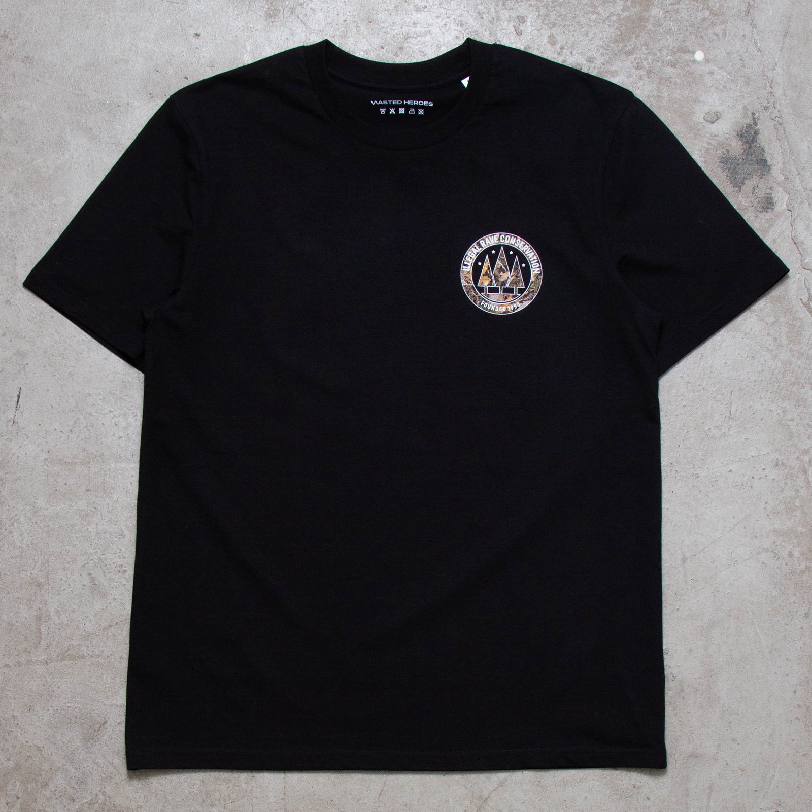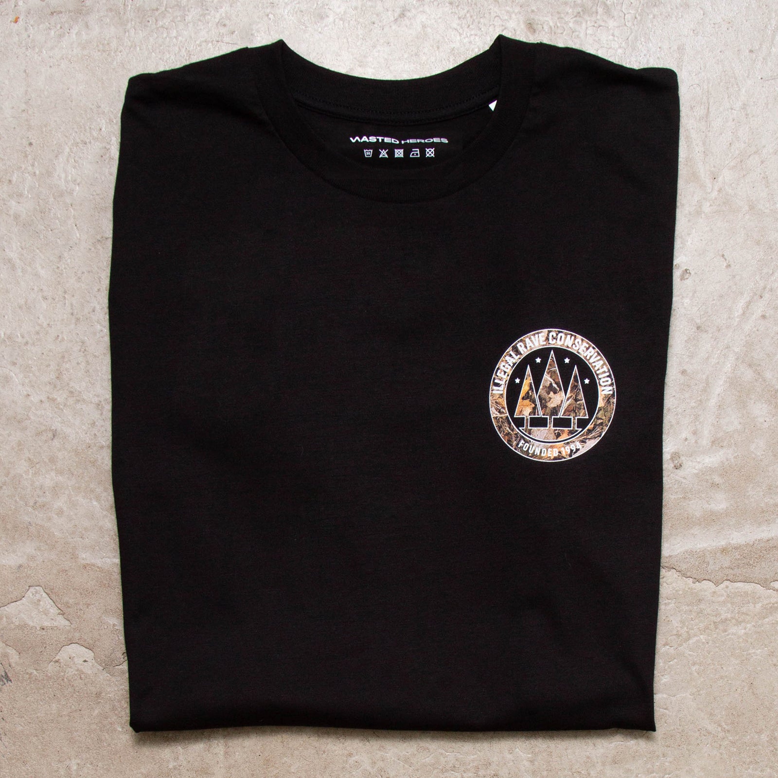 The Illegal Rave Conservation Realtree T-shirt. Wasted Heroes. Referencing the Criminal Justice and Public Order Act 1994.