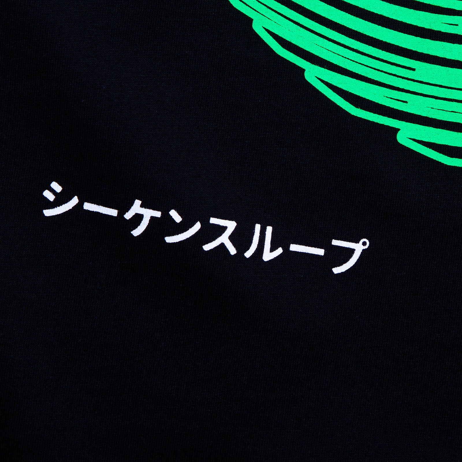 Twisted and tumbling lines form our classic Sequence Sphere 'Hypnotic Loops' t-shirt.