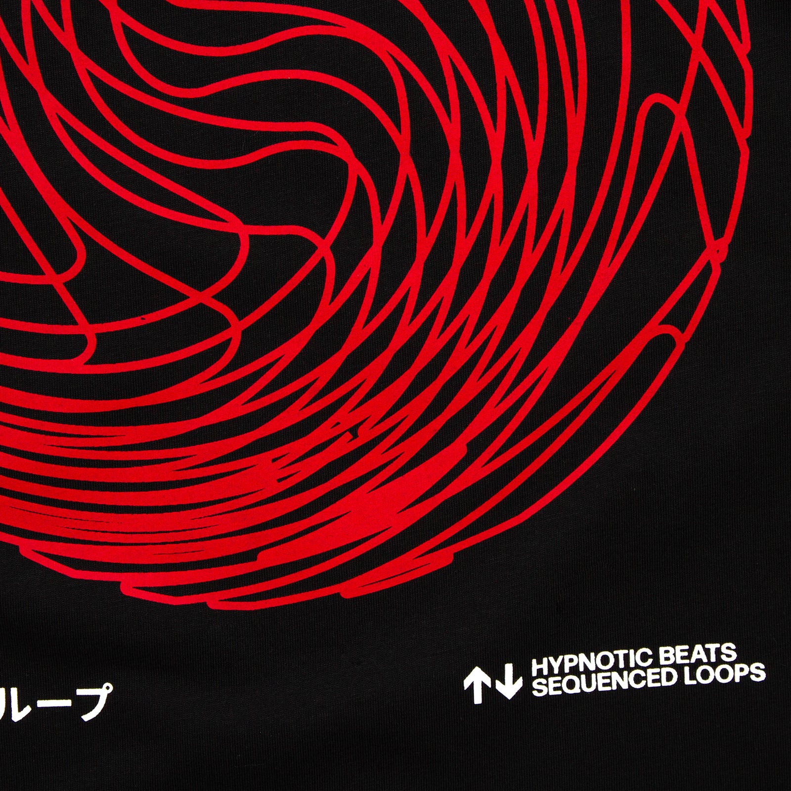 Twisted and tumbling lines form our classic Sequence Sphere Hypnotic Loops t-shirt