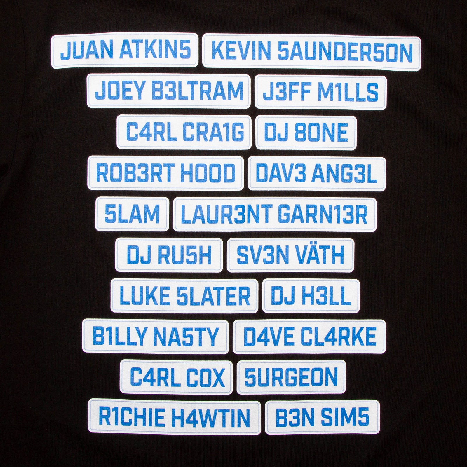 Born from an initial “foundations” concept and expanded through community input, this design brings together influential names from the techno scene, spanning the early 1990s through the late 2000s.