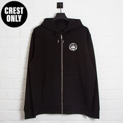 Printed on 100% Organic Cotton. 350GSM weight zip-thru hood with embroidered Badge.