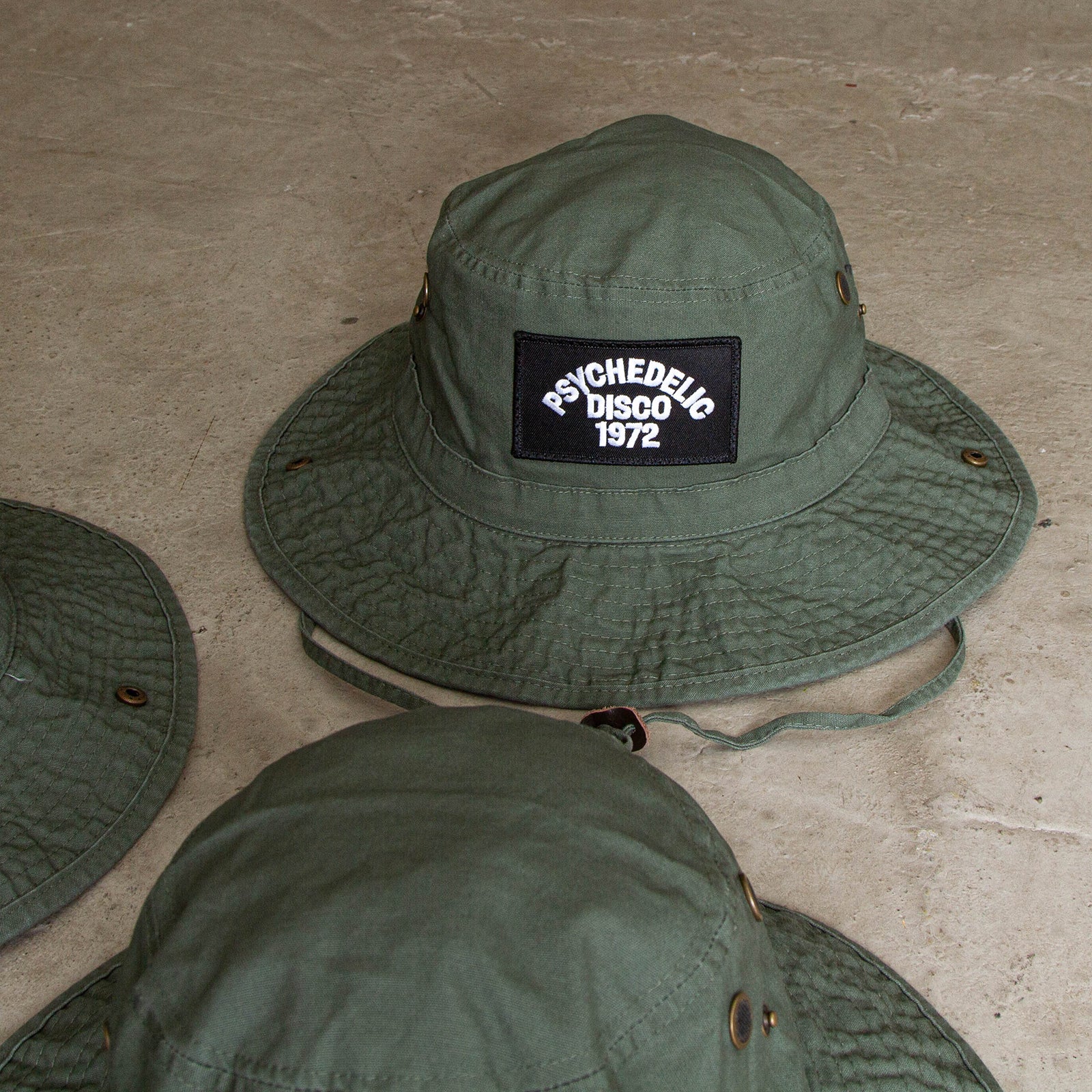 1972 Psychedelia Disco - Draw String Bucket Hat - Khaki