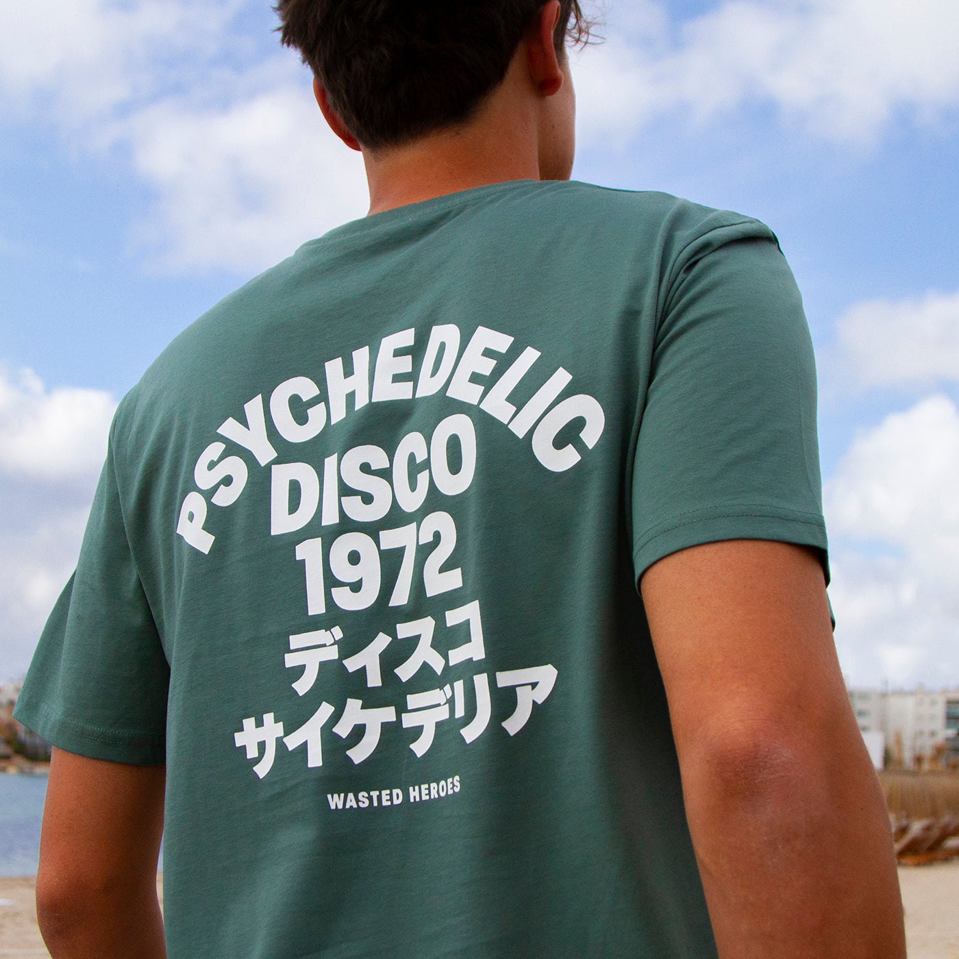 1972 Psychedelic Disco Back Print - Tshirt - Green