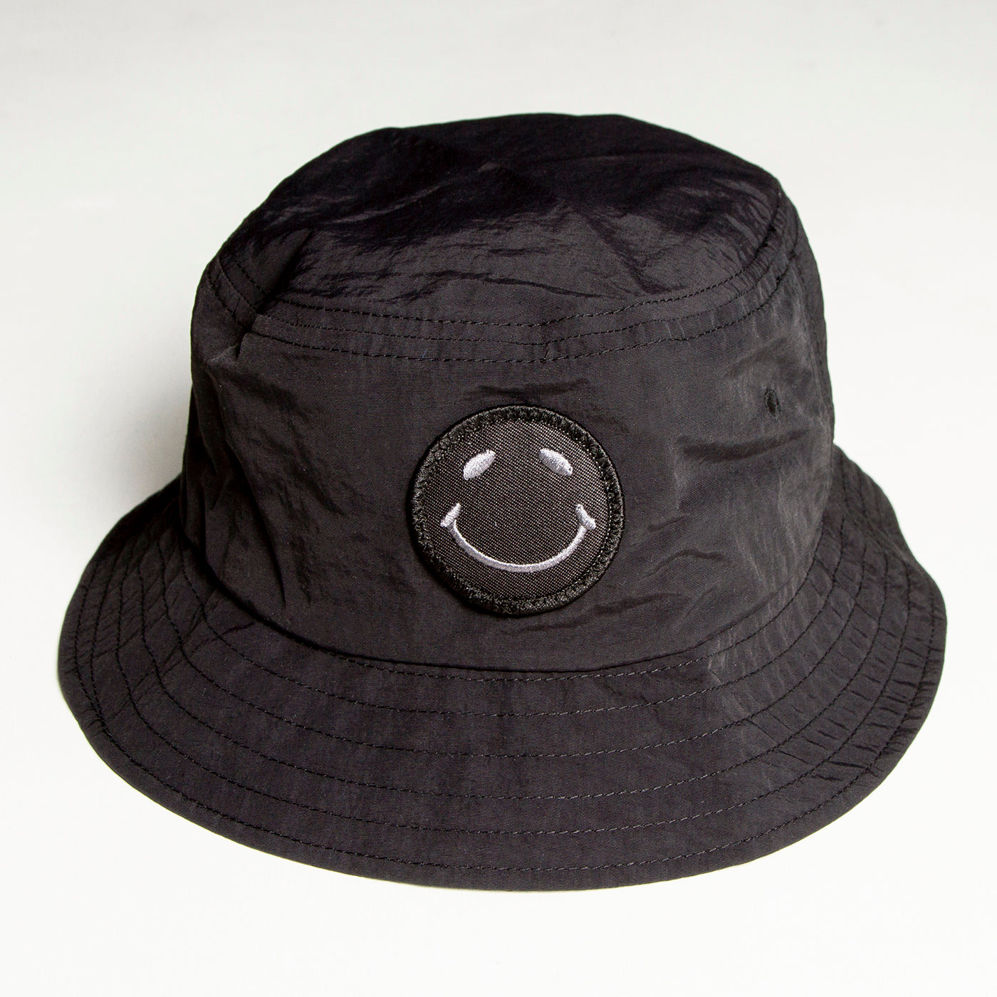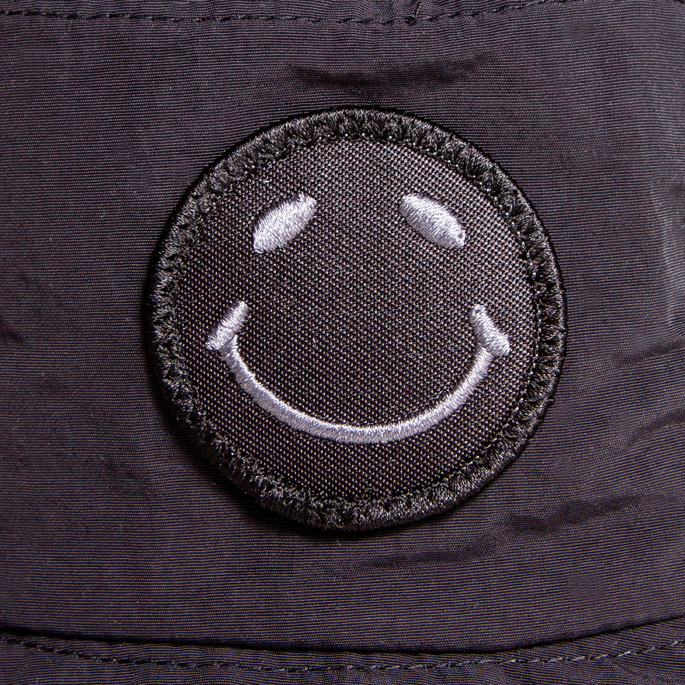 Smiley Water-repellent Bucket Hat with embroidered badge.
