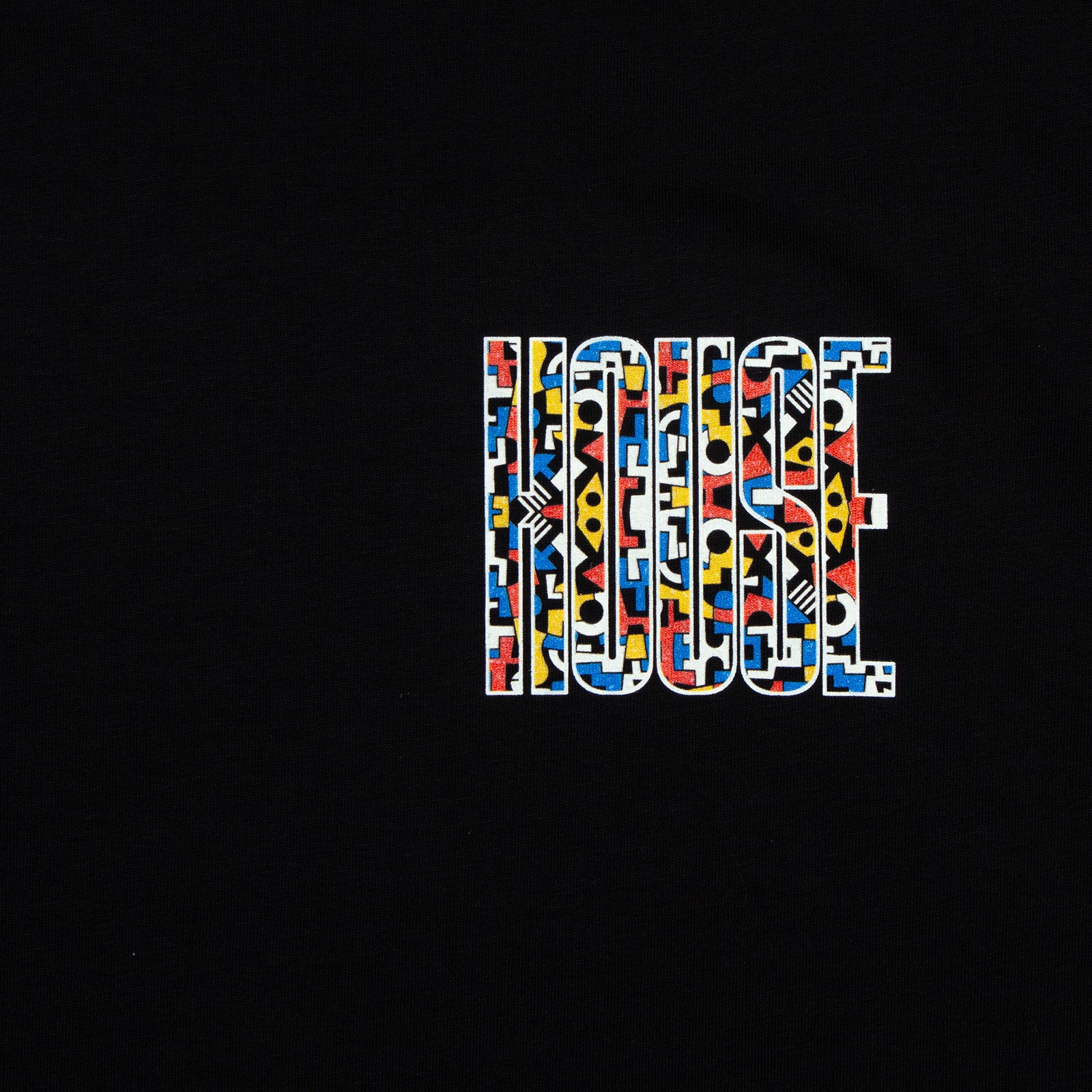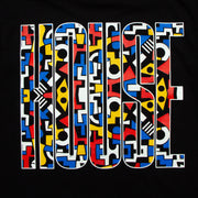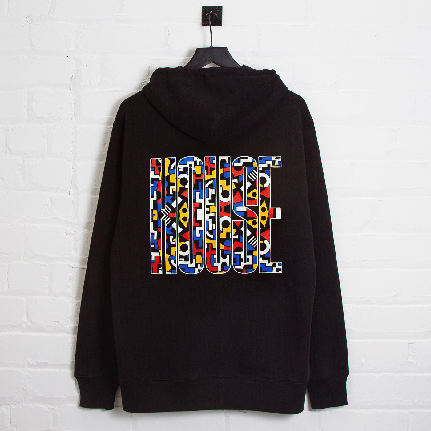 House Music All Night Long. The typography Higher House hoodie with retro triangle graphic fill. Large back print graphic with small front crest. Printed in-house by us on a unisex heavy-weight 100% Organic Cotton Hood (350gsm).