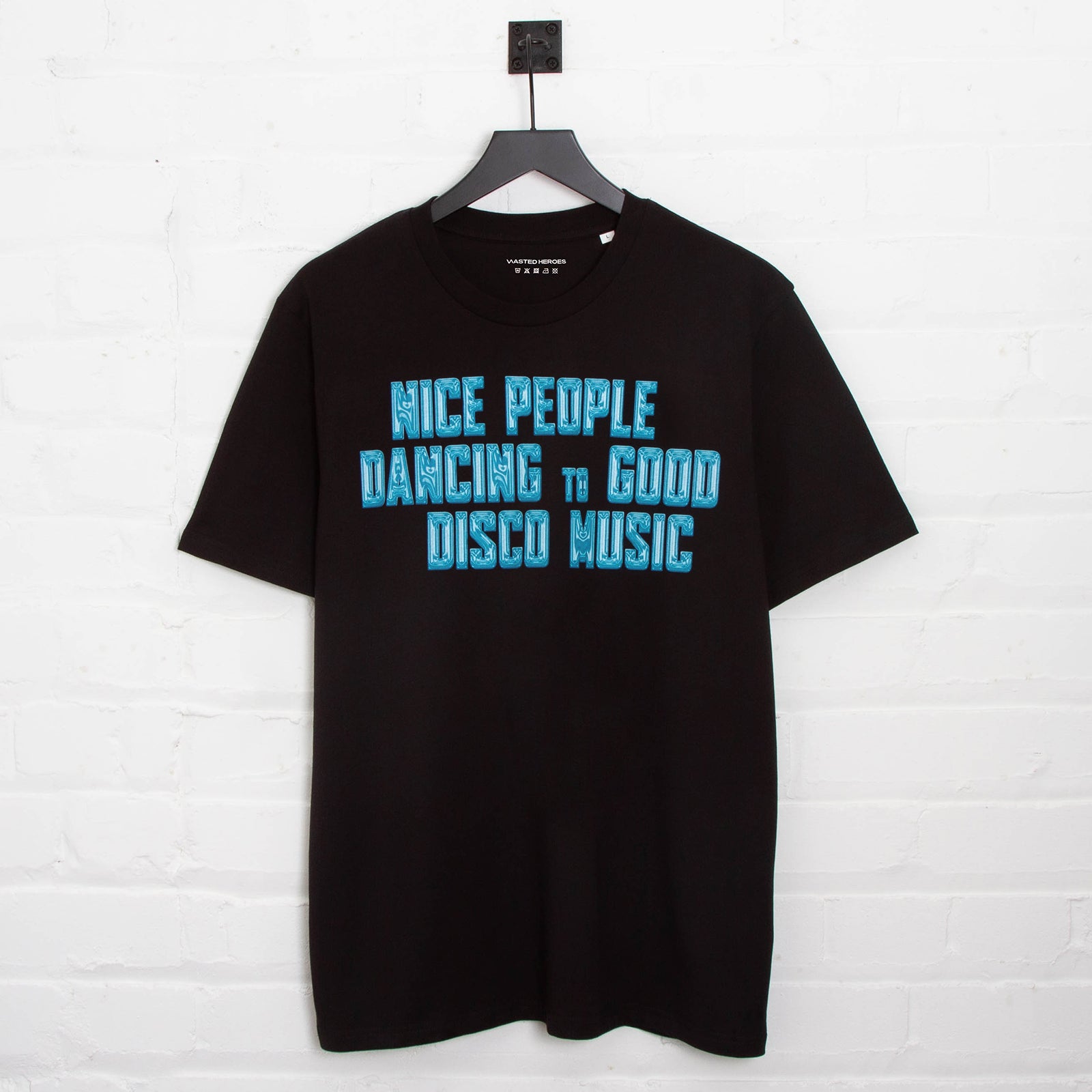 Disco People Chrome Blue Front Print - Tshirt - Black