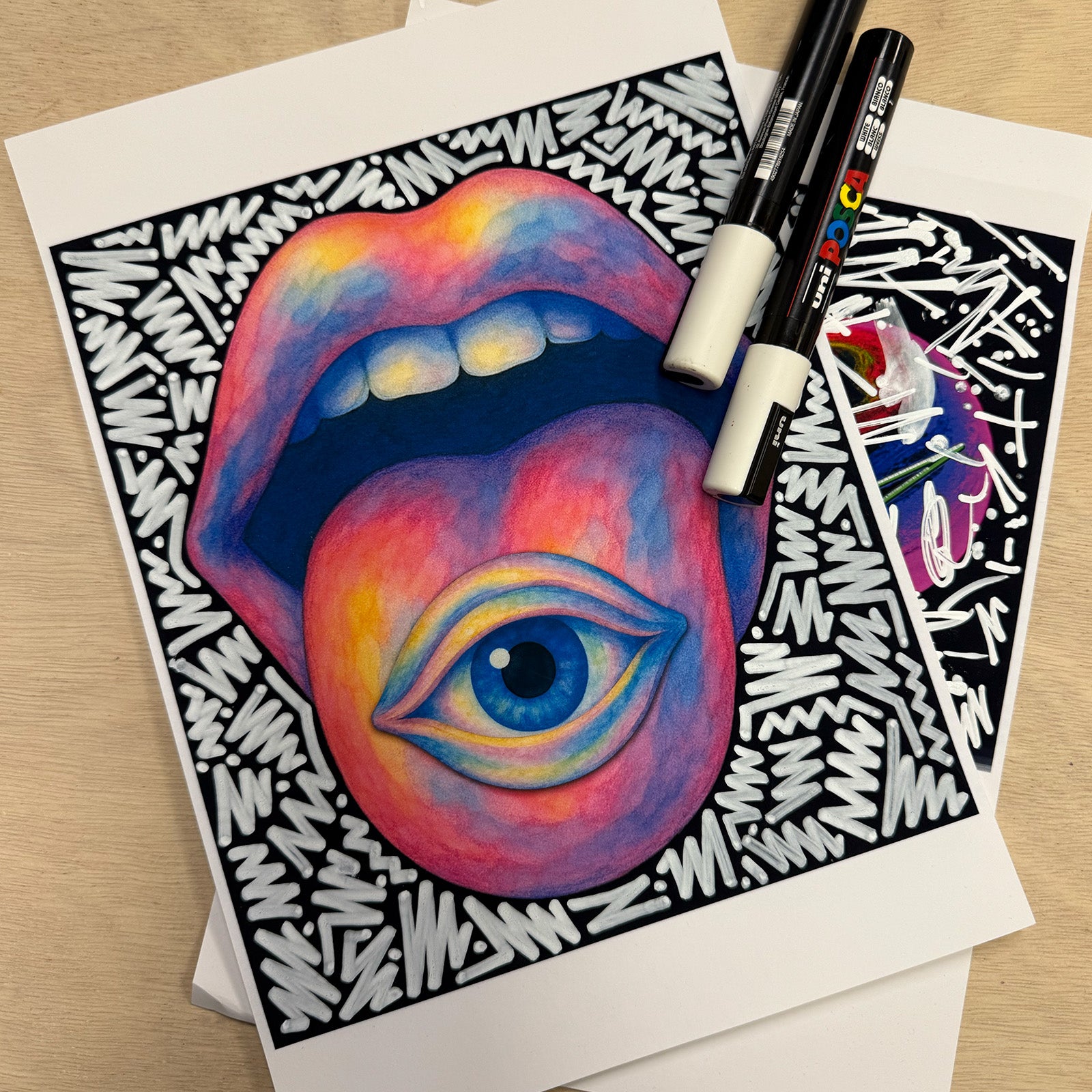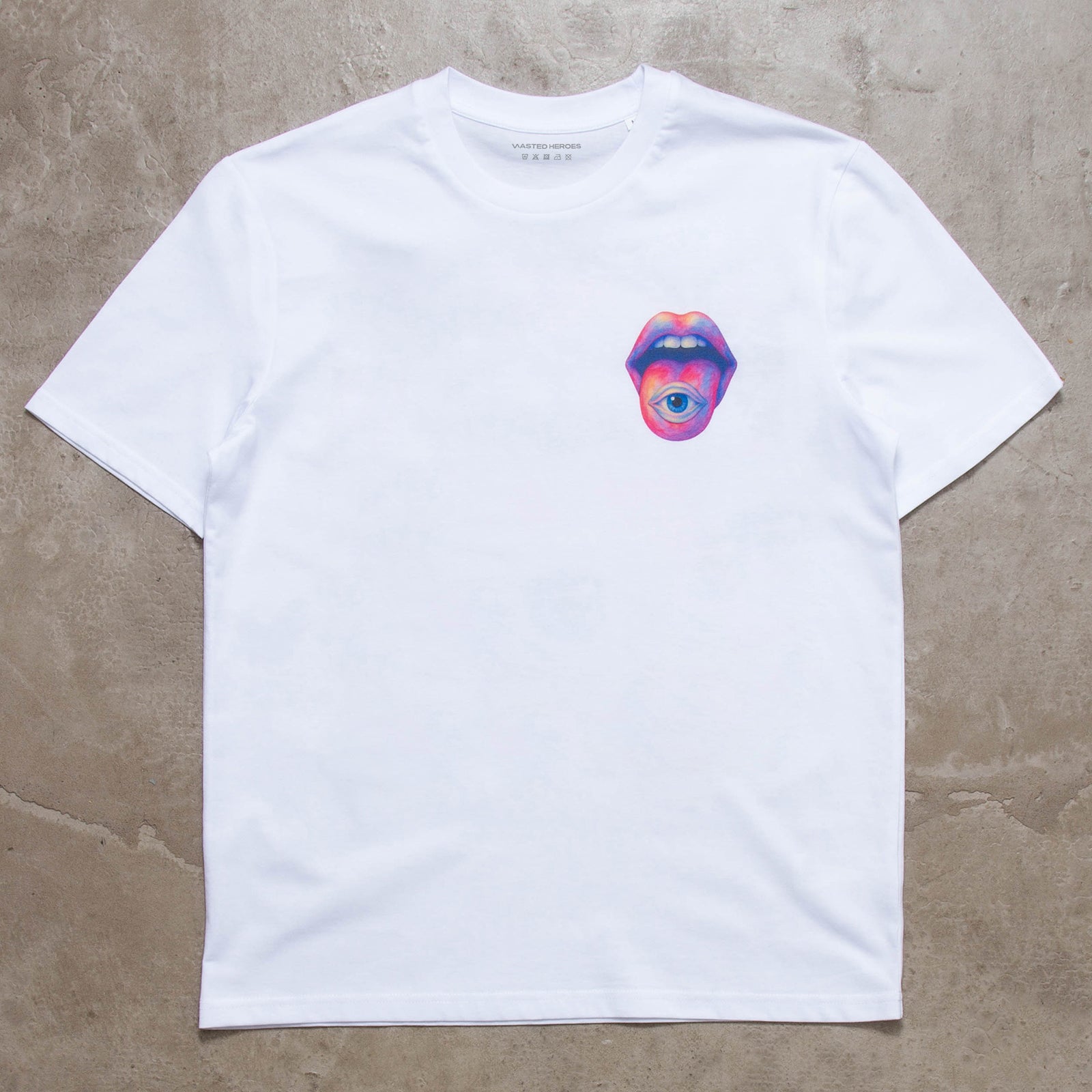 The Wasted Heroes Doodle Collection, we started doodling and couldn’t stop! Hand-drawn designs featuring trippy shrooms, doves, strawberries, toads, and eyes. Available as front or back prints on regular and oversized T-shirts