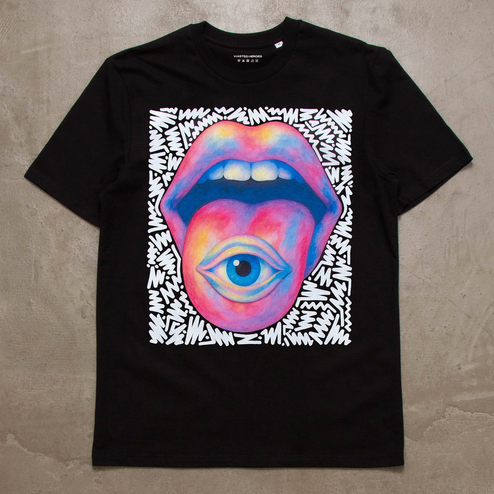 The Wasted Heroes Doodle Collection, we started doodling and couldn’t stop! Hand-drawn designs featuring trippy shrooms, doves, strawberries, toads, and eyes. Available as front or back prints on regular and oversized T-shirts