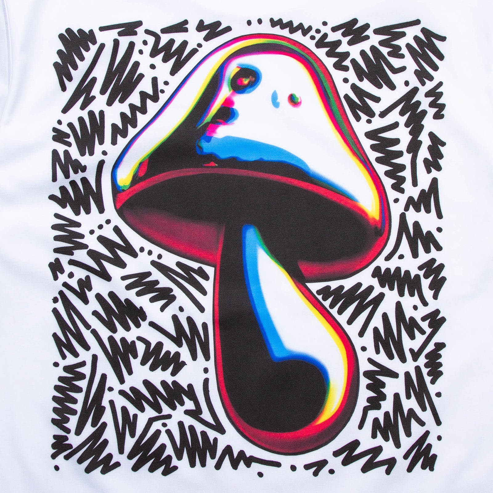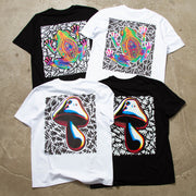 The Wasted Heroes Doodle Collection, we started doodling and couldn’t stop! Hand-drawn designs featuring trippy shrooms, doves, strawberries, toads, and eyes. Available as front or back prints on regular and oversized T-shirts