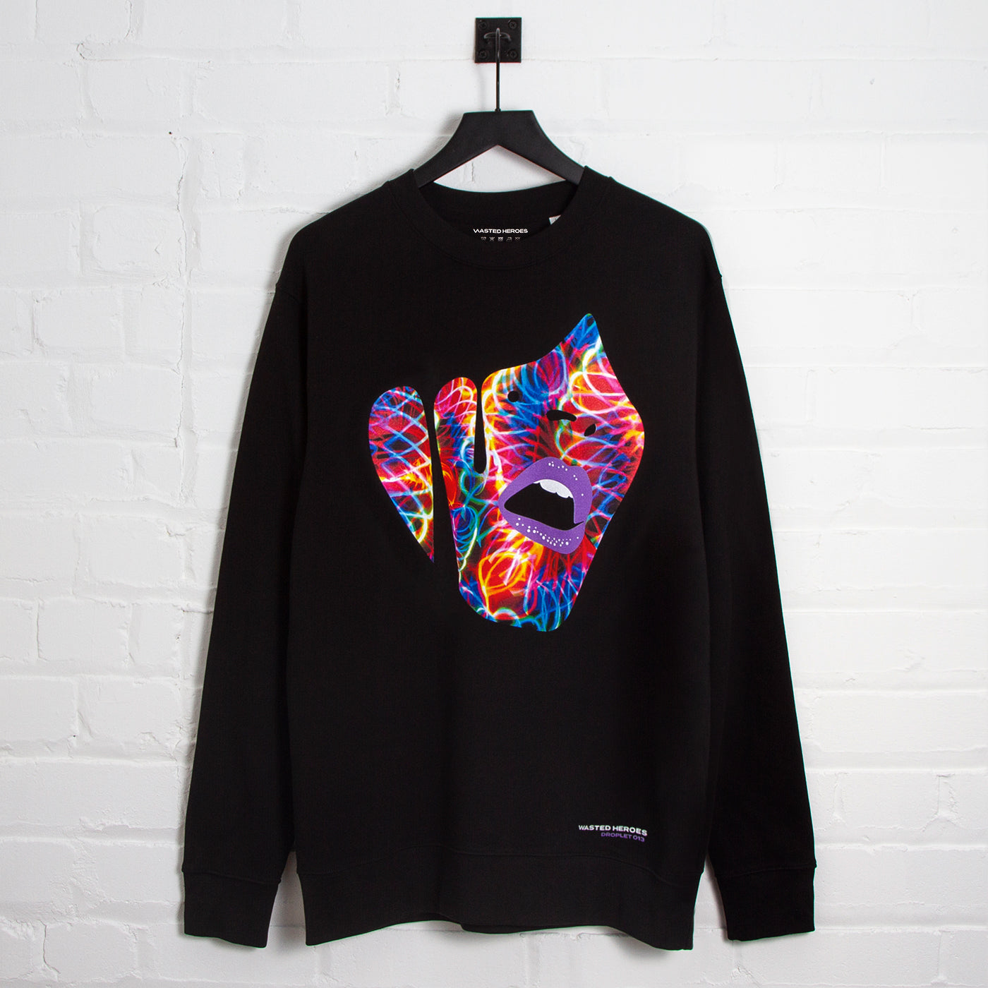 Droplet Face 013 Front Print - Sweatshirt - Black