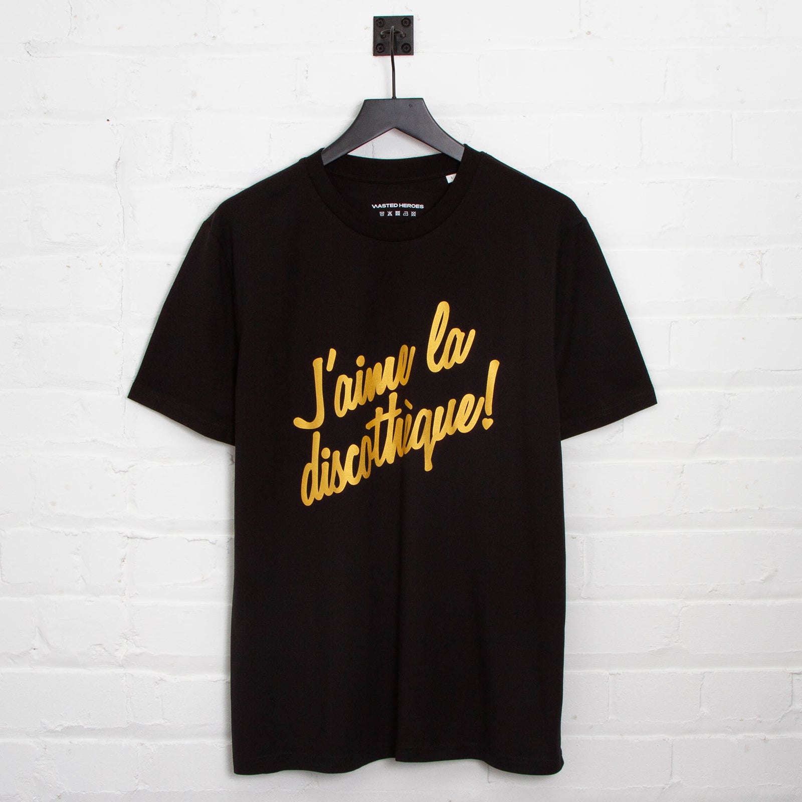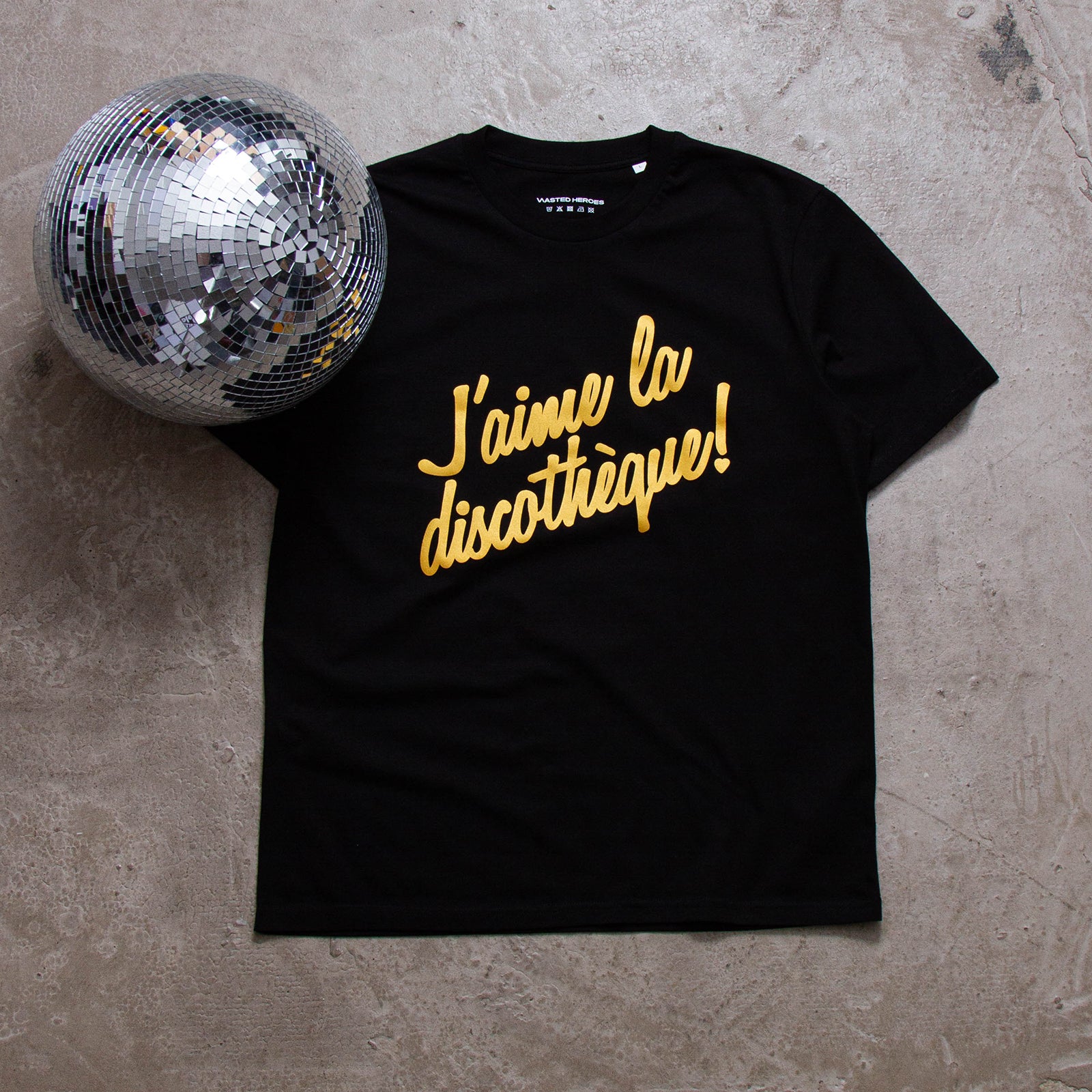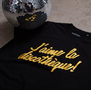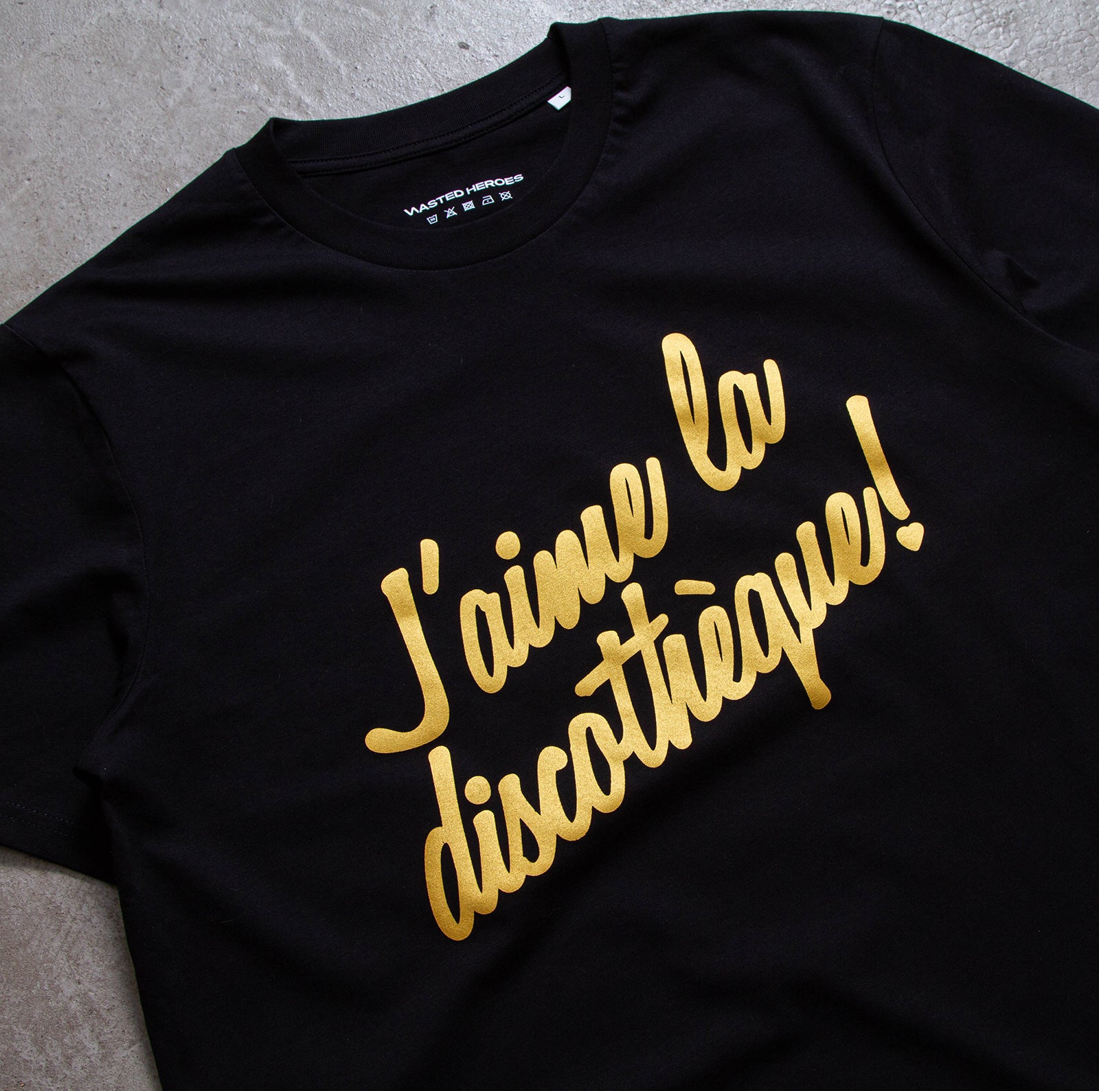 Limited Edition. Gold print J'aime la discotheque T-shirt.