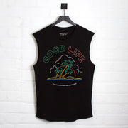Neon Good Life Front Print - Tank Tshirt - Black