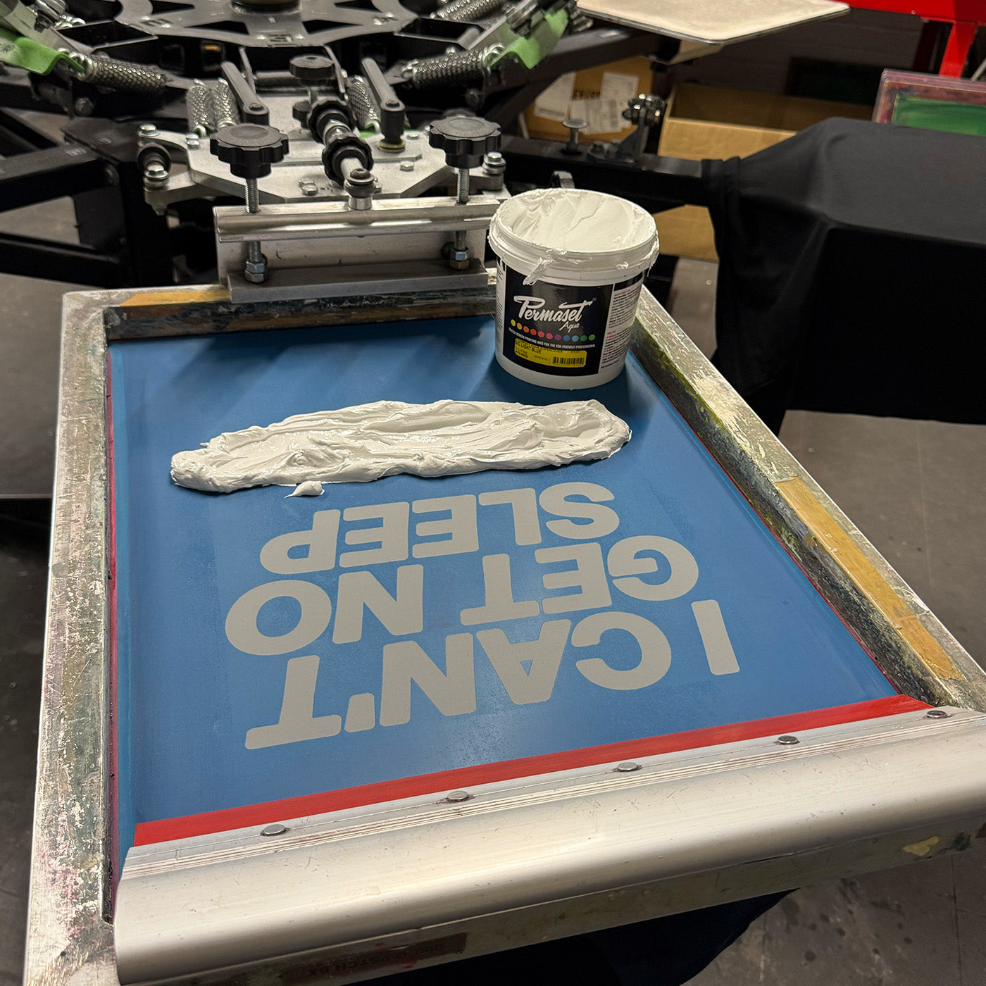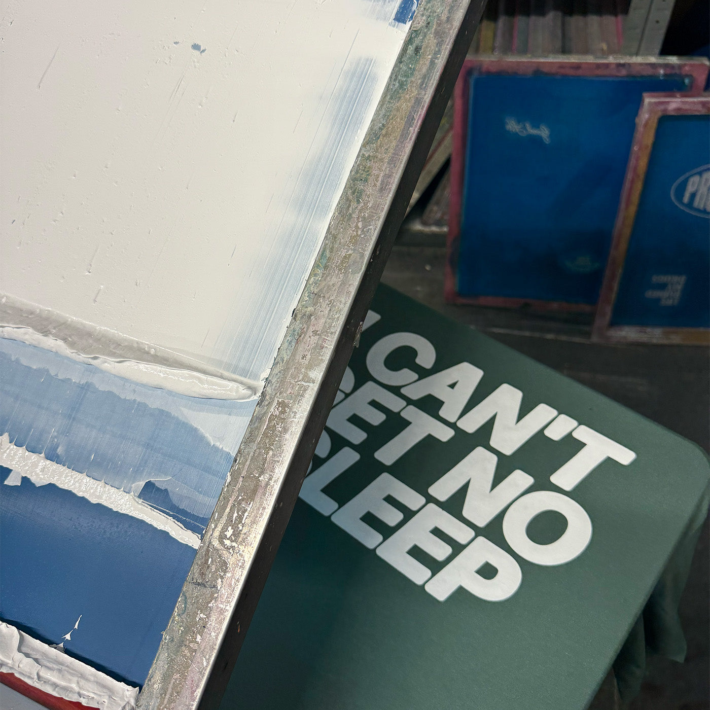 We create a screen featuring a song lyric and release it as a front or back print, available in 11 colours. After one week, we print all orders in a single batch, then the screen is deleted. Watch this space for more releases!