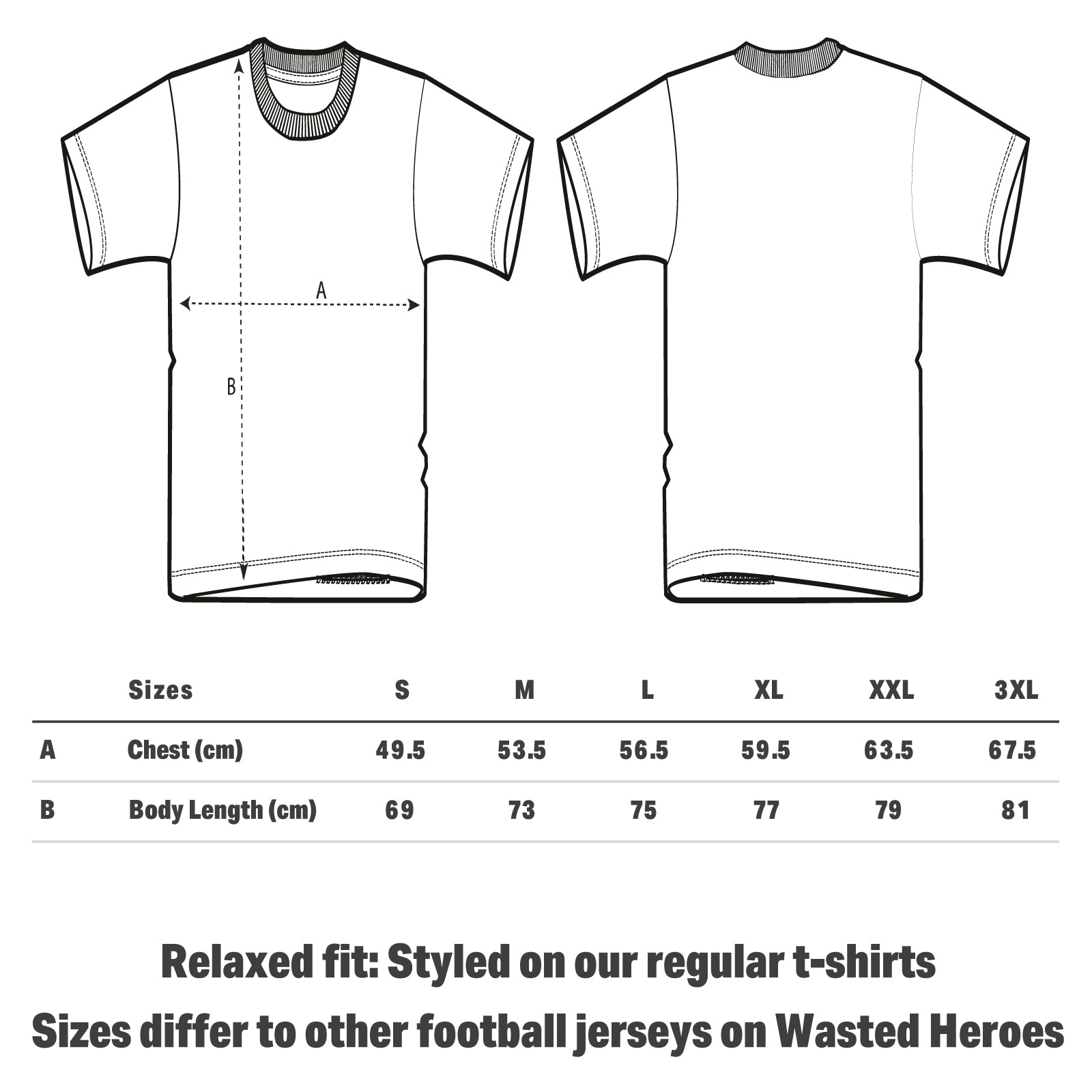 A more relaxed fit than the branded Adidas and Nike jerseys we customise. So please check size guides separately.