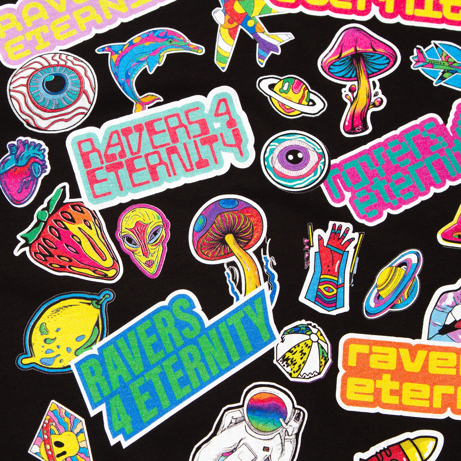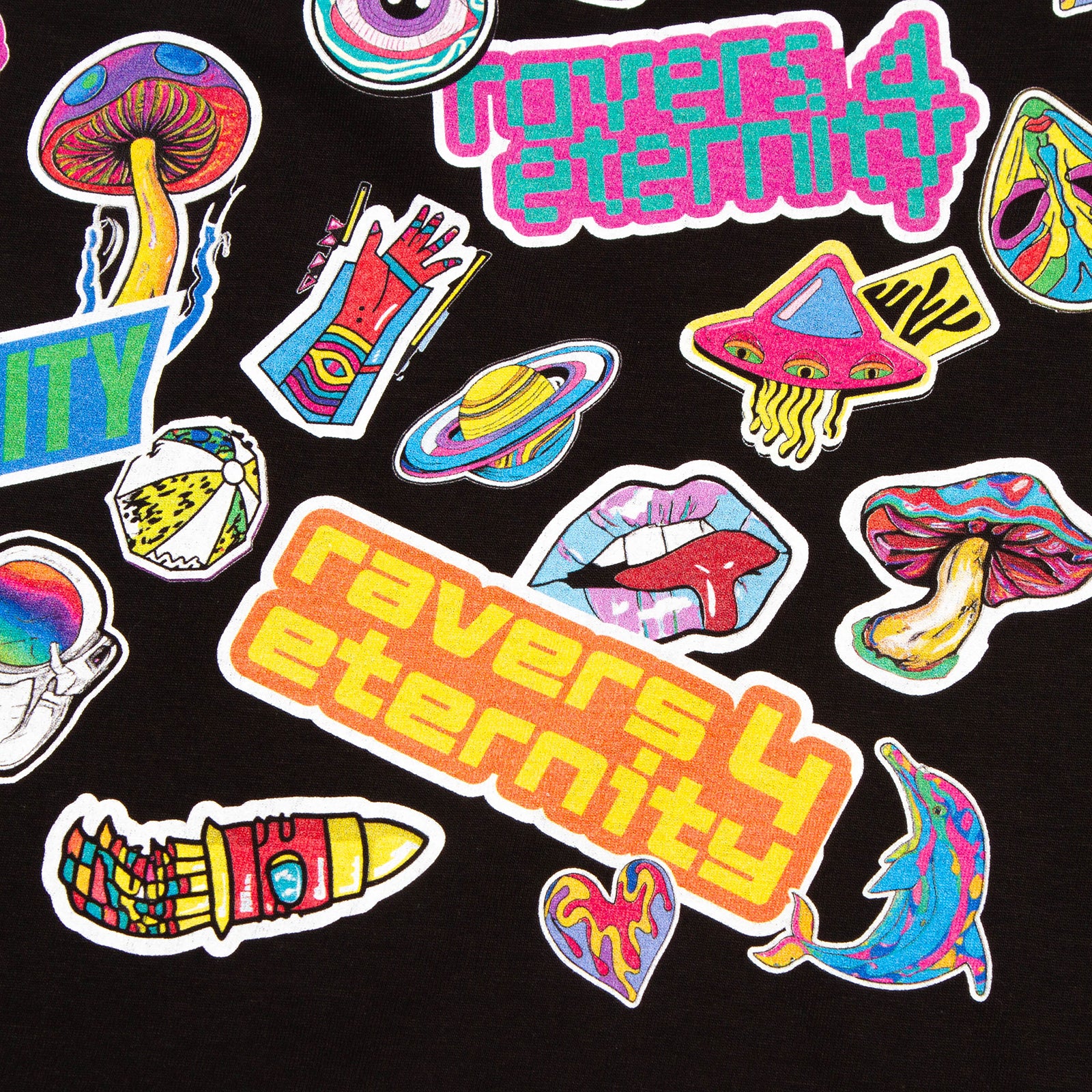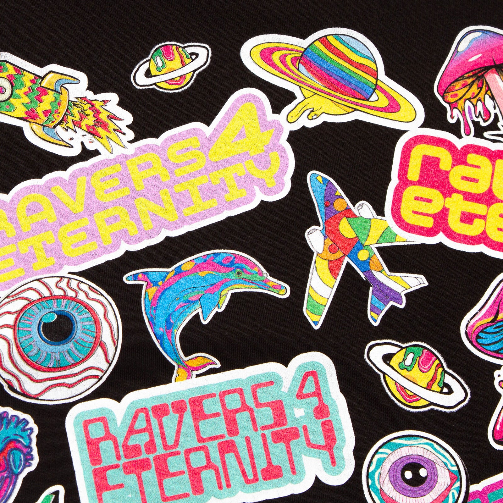 Ravers 4 Eternity Stickers Front Print - Tshirt - Black
