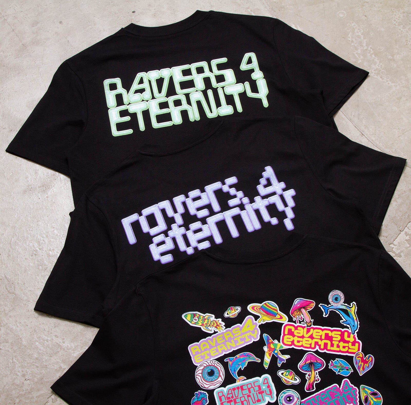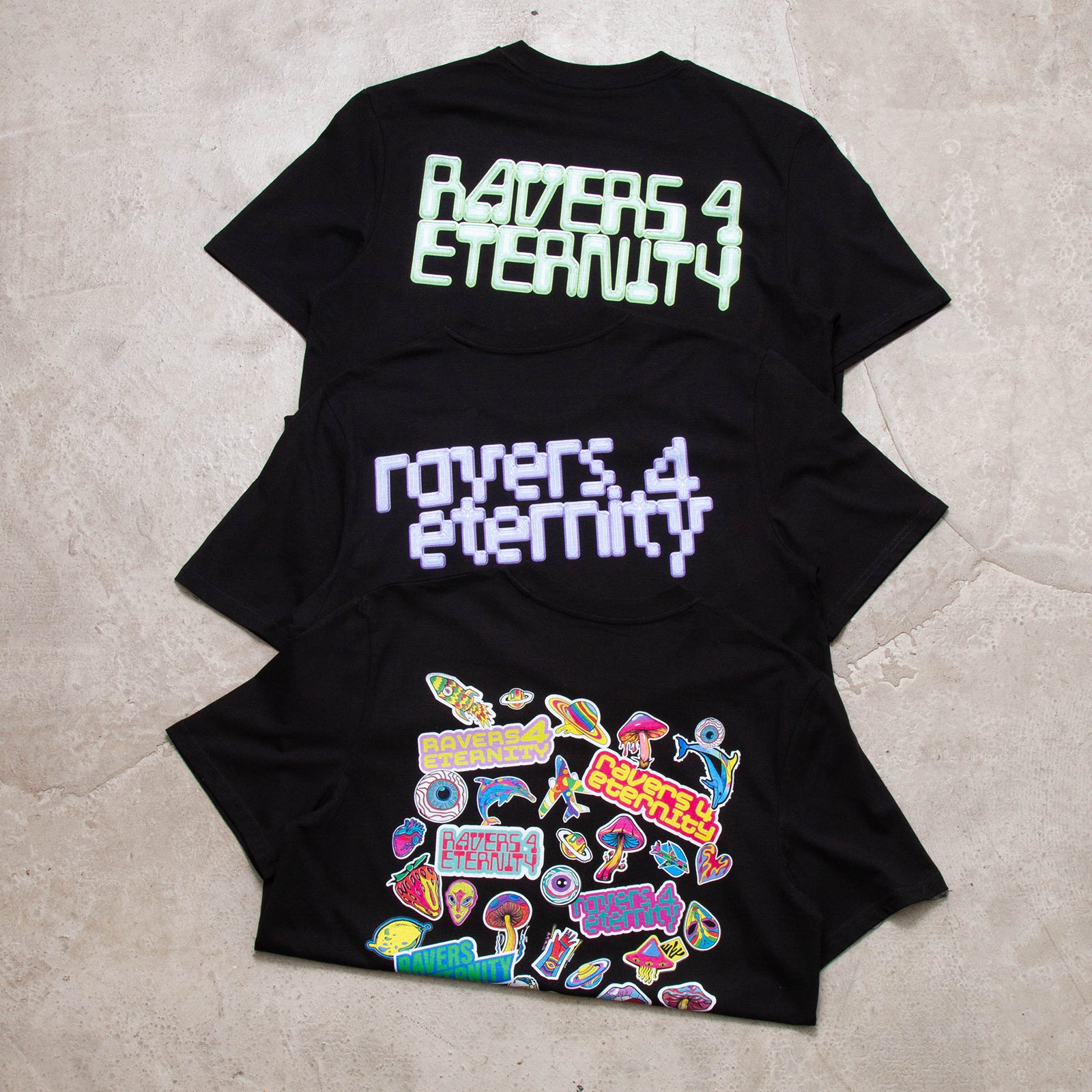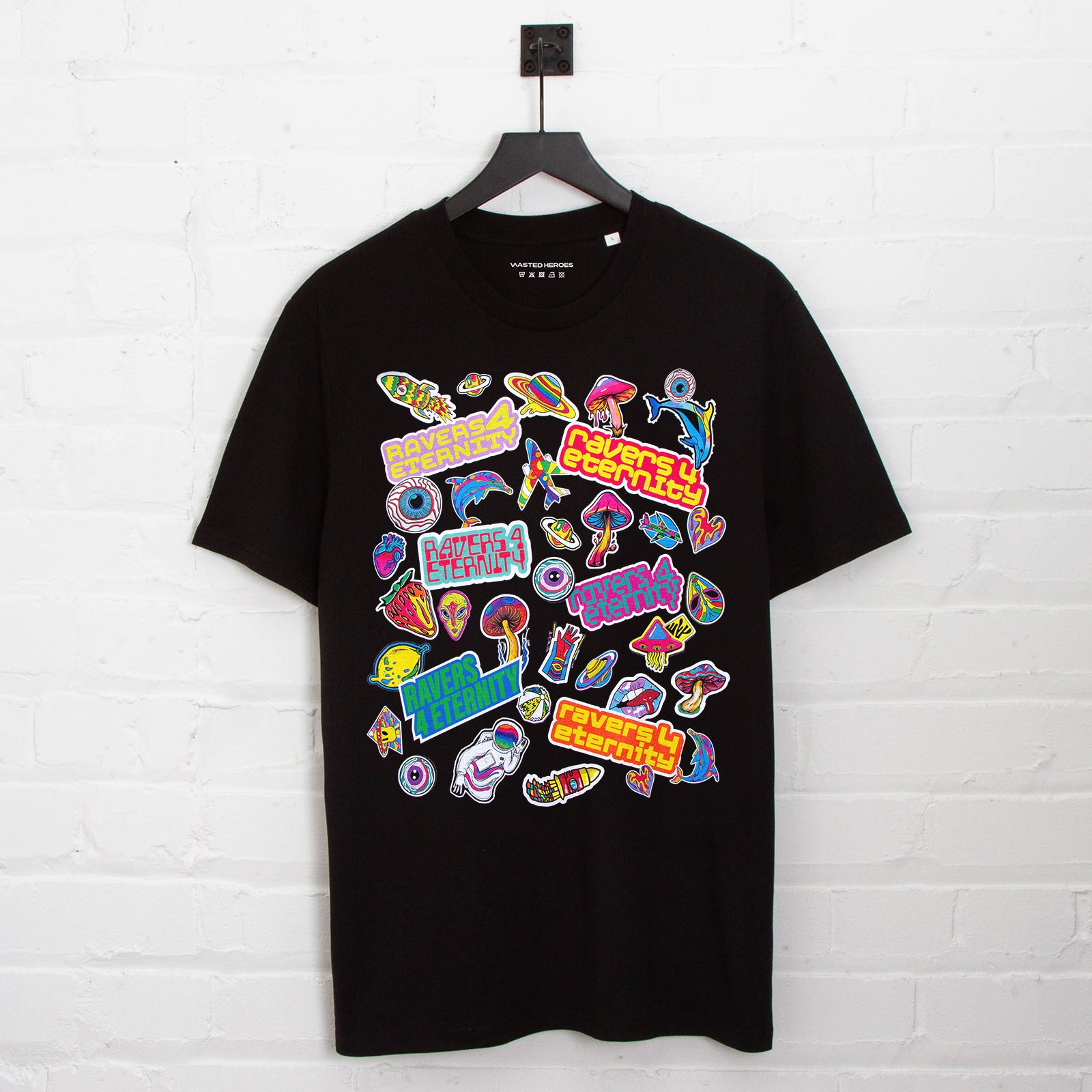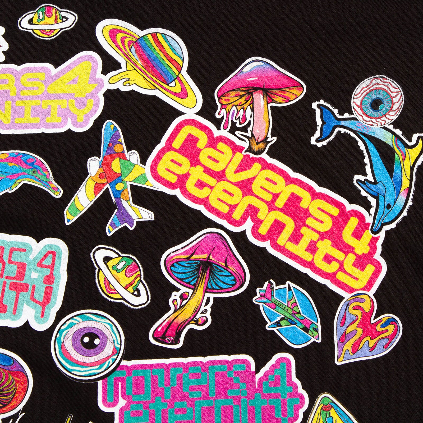 Ravers 4 Eternity Stickers Front Print - Tshirt - Black