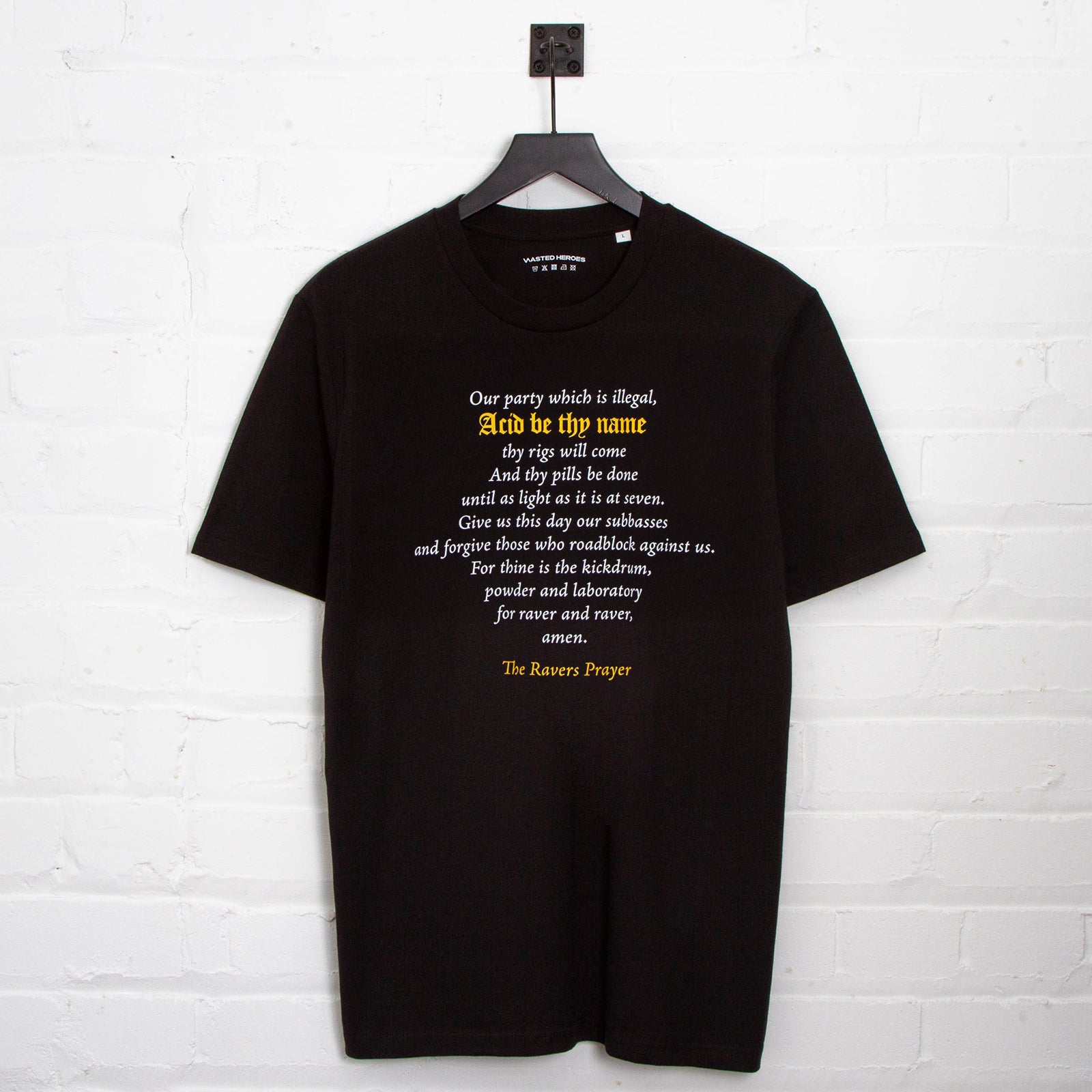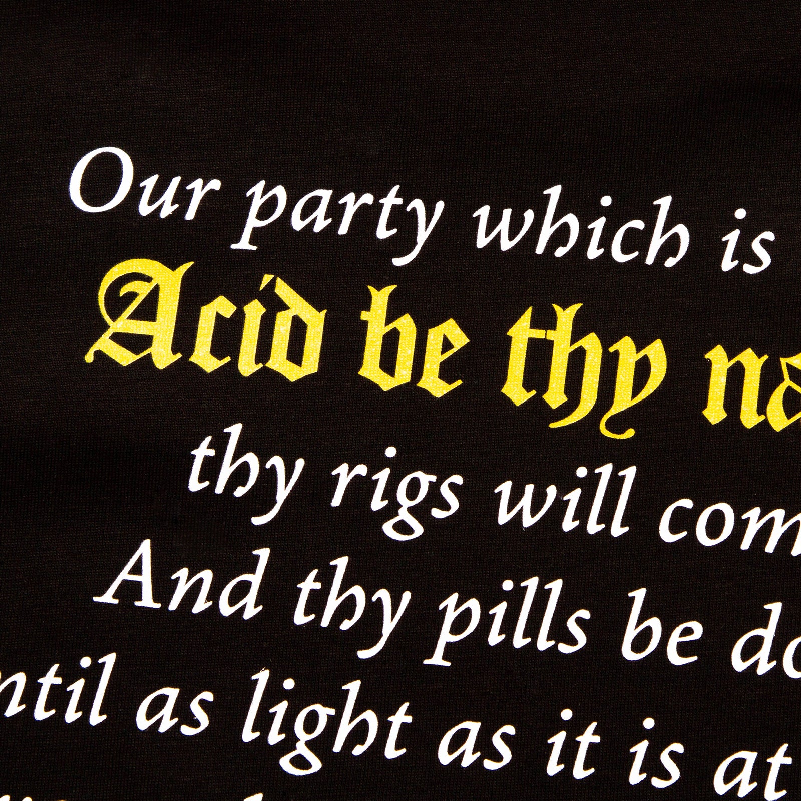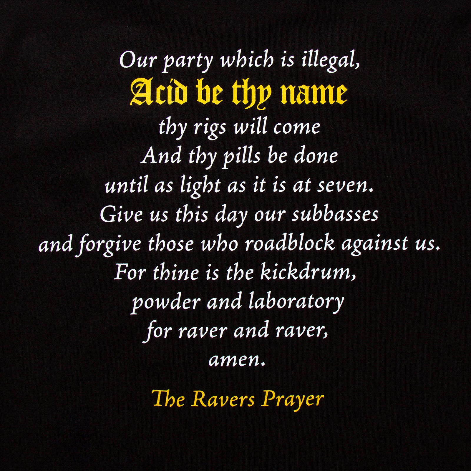 Rave New World Ravers Prayer T-shirt. Acid Be Thy Name.