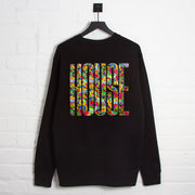 The Higher House design has been remixed with playful, colourful, and energetic shapes. Gotta have House, music, all night long. Large back print graphic with small front crest. Printed in-house by us on a unisex heavy-weight 100% Organic Cotton sweatshirt (350gsm).