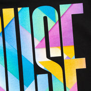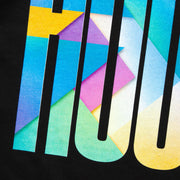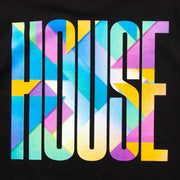 House Music All Night Long. The typography Higher House hoodie with retro triangle graphic fill. Large back print graphic with small front crest. Printed in-house by us on a unisex heavy-weight 100% Organic Cotton Hood (350gsm).